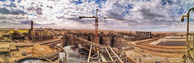 Swakop Uranium started development of the mine in February 2013. The main part of the Husab project is the R?ssing South orebody, about 5 kilometres south of the R?ssing mine and 45 km northeast of Walvis Bay port. Husab plans to mine 15 million tonnes of ore per year from two separate open pits to feed a processing plant designed to produce 6000t U3O8 per year. Mine construction commenced in 2014. Production started at the end of 2016, during which year 192t U3O8 was produced. Production will ramp up to 5500t U3O8/year by 2020, with most of the product being supplied to China and up to 20% being marketed internationally by CGN Global Uranium Ltd, incorporated in the UK.