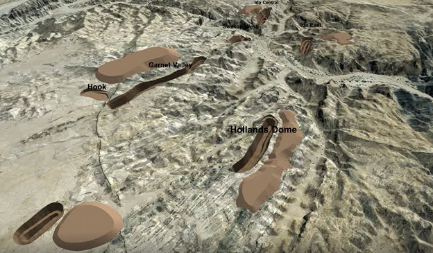 The Husab mine has five potential mineralised zones, of which two are being mined currently through open pit operations. In these zones, there are six different formations: Kalahari forms the overburden, below the Kalahari are Khan and Chuos, followed by Rossing, Karibib and the intrusive layer, which occurs a lot deeper. The ore is concentrated around the Rossing formation.